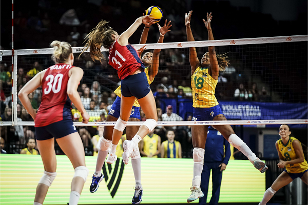Depois de vencer os seus três primeiros jogos (Alemanha, Polônia e República Dominicana) na Liga das Nações Feminina, a jovem e renovada seleção brasileira não conseguiu resistir às atuais campeãs olímpicas. Neste sábado (04), as brasileiras foram superadas pelas norte-americanas por 3 sets a 0 (25-21, 25-20 e 25-18), em Bossier City, nos Estados Unidos.