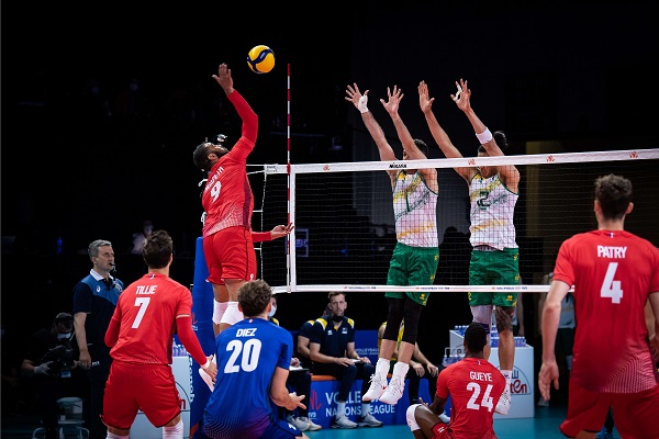 A seleção masculina da França venceu a Austrália por 3 sets a 1, parciais de (28-26, 20-25, 25-14 e 25-23), neste domingo (30), pela Liga das Nações 2021 mascuina, em Rimini, na Itália.