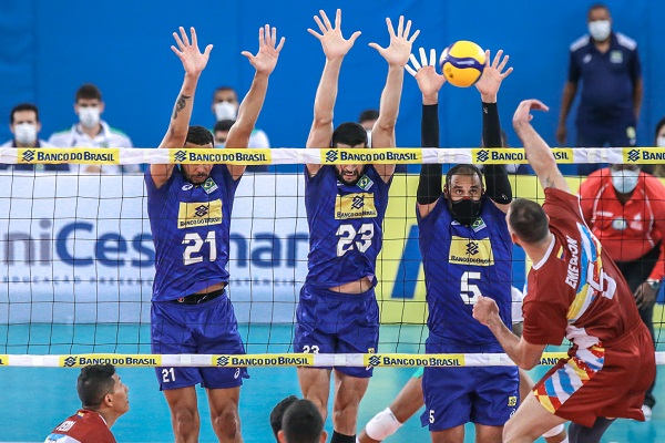 Felipe Roque, oposto do Brasil: “A gente veio na proposta de rodar mais o time, todo mundo ter uma rodagem, aproveitar um pouquinho o jogo. Hoje foi minha vez. Acho que ainda estou me encaixando com o Cachopa, algumas bolinhas, mas é só crescendo agora, evoluindo a cada dia. Ontem o saque entrou, foi uma sequência bem bacana, consegui ajudar bastante a equipe no começo do set. Hoje, se o saque não foi tão bom, eu pude ajudar em outras questões. Isso que é importante, ajudar a equipe no que eu puder”, disse Felipe Roque.