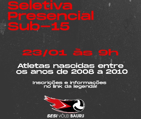 As candidatas interessadas em inscrever-se nas seletivas devem acessar https://bauru.sesisp.org.br/sesi-volei-bauru-promovera-seletiva-sub-15, onde estarão todas as informações necessárias, como a ficha de inscrição, que deve ser baixada e preenchida.